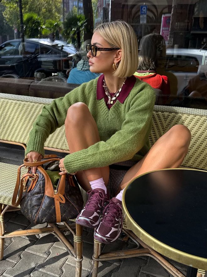这是最让人惊喜的组合,无领毛衣与翻领毛衣的相遇。